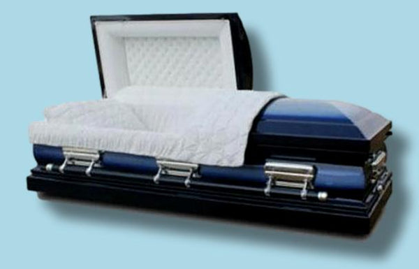 Model Number 16-228 Beautiful Two Toned Spruce Blue with Monarch Blue Finish White Velvet Interior in a French Fold Design 18 Gauge Steel Full Rubber Gasket Sealer Swing Bar Handle...