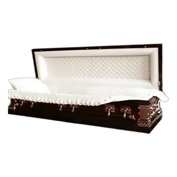 The casket is shipped in one of two special cargo compartments under the commercial passenger airplanes (typically American, Delta or United) apart from the other luggage. These two special compartments are where they store bodies and empty caskets. This is how the casket is packaged. First there is a thin layer of Styrofoam, followed by a layer of bubble wrap. Over that are placed large blocks of hard Styrofoam which provide most of the support as well as 5" thick styrofoam caps over both ends. Over that is a double-walled cardboard box and then another double-walled box over that. You can literally beat the box with a baseball bat and not hurt the casket. There is roughly 3-5 inches between the outer box and the inner casket so if the box is ruffled on the outside, the casket will not be scratched or dented 3-5 inches below the box surface. After it gets to the airport the hot-shot courier typically picks up your casket and delivers it directly to the funeral home in his van. We will email you to notify you that the casket has been delivered.