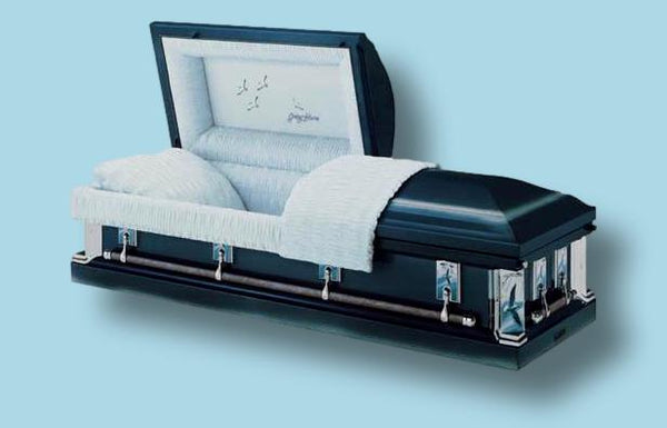 The casket is shipped in one of two special cargo compartments under the commercial passenger airplanes (typically American, Delta or United) apart from the other luggage. These two special compartments are where they store bodies and empty caskets. This is how the casket is packaged. First there is a thin layer of Styrofoam, followed by a layer of bubble wrap. Over that are placed large blocks of hard Styrofoam which provide most of the support as well as 5" thick styrofoam caps over both ends. Over that is a double-walled cardboard box and then another double-walled box over that. You can literally beat the box with a baseball bat and not hurt the casket. There is roughly 3-5 inches between the outer box and the inner casket so if the box is ruffled on the outside, the casket will not be scratched or dented 3-5 inches below the box surface. After it gets to the airport the hot-shot courier typically picks up your casket and delivers it directly to the funeral home in his van. We will email you to notify you that the casket has been delivered.