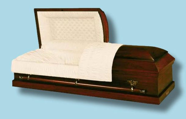 The casket is shipped in one of two special cargo compartments under the commercial passenger airplanes (typically American, Delta or United) apart from the other luggage. These two special compartments are where they store bodies and empty caskets. This is how the casket is packaged. First there is a thin layer of Styrofoam, followed by a layer of bubble wrap. Over that are placed large blocks of hard Styrofoam which provide most of the support as well as 5" thick styrofoam caps over both ends. Over that is a double-walled cardboard box and then another double-walled box over that. You can literally beat the box with a baseball bat and not hurt the casket. There is roughly 3-5 inches between the outer box and the inner casket so if the box is ruffled on the outside, the casket will not be scratched or dented 3-5 inches below the box surface. After it gets to the airport the hot-shot courier typically picks up your casket and delivers it directly to the funeral home in his van. We will email you to notify you that the casket has been delivered.